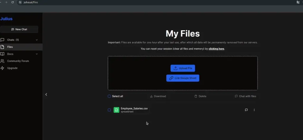 El primer paso para utilizar Julius AI es cargar un dataset. En este ejemplo, se utilizará un conjunto de datos de salarios de empleados de una empresa. Para comenzar, los usuarios deben abrir Julius y seleccionar el archivo correspondiente.